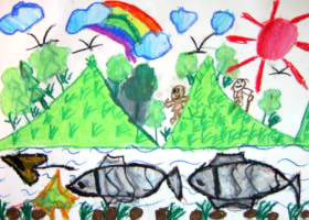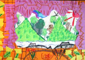 該學生平日上課和作品表現均較拘謹,未能放膽表達意念,作品較單調。 是次作品表現明顯比前大膽,盡情表達自己對大自然的熱愛。互動的評賞活動提升了他的自信,有助他的意念發展之餘,他亦自發地嘗試運用不同技巧於創作中。 |