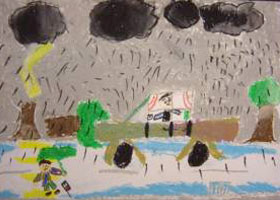 | 該學生是次作品較平日創作有動感,內容更豐富,他表現更自發及具有強烈表達意念的欲望。 |