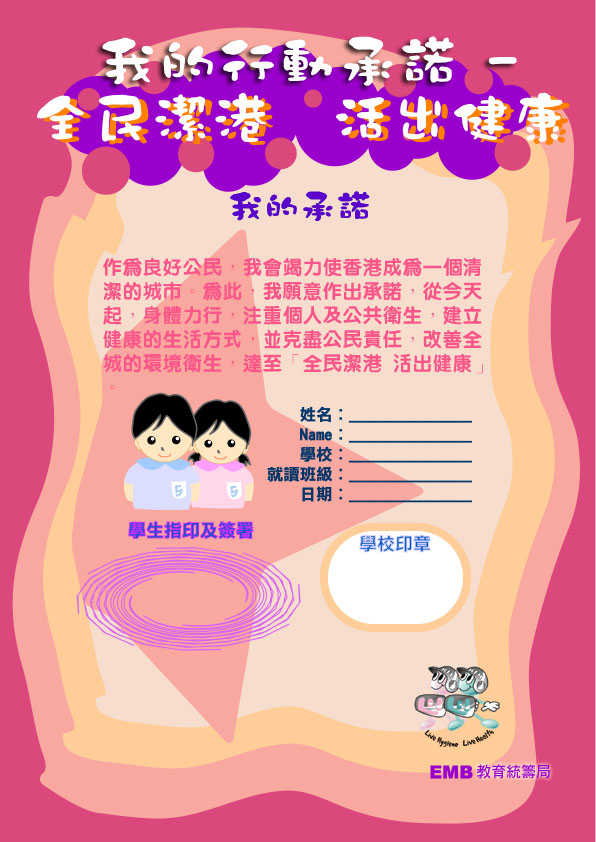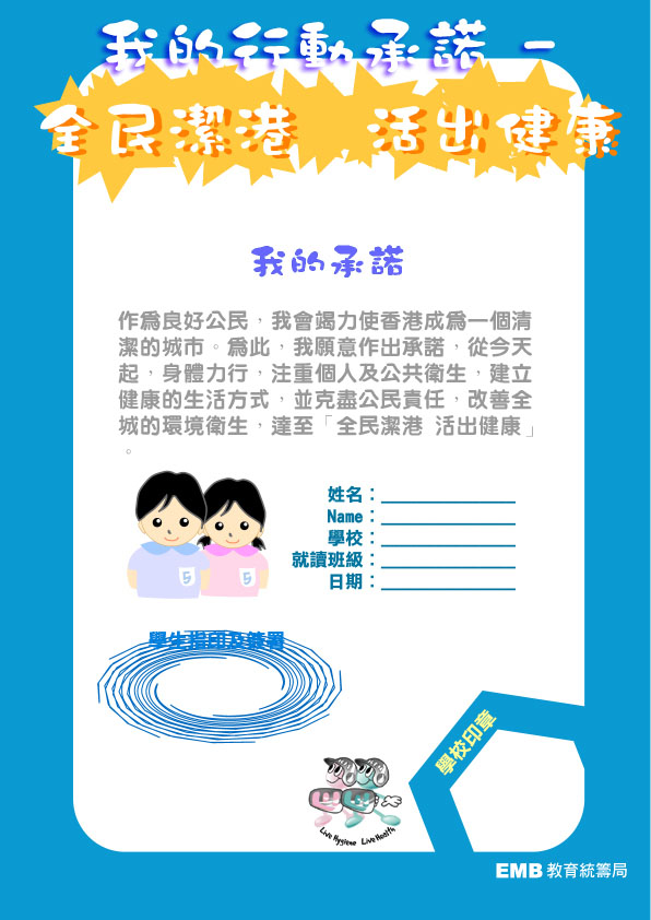 為配合學校舉行「全民潔港 活出健康」承諾日而草擬的承諾書,供學校在宣誓儀式時用。